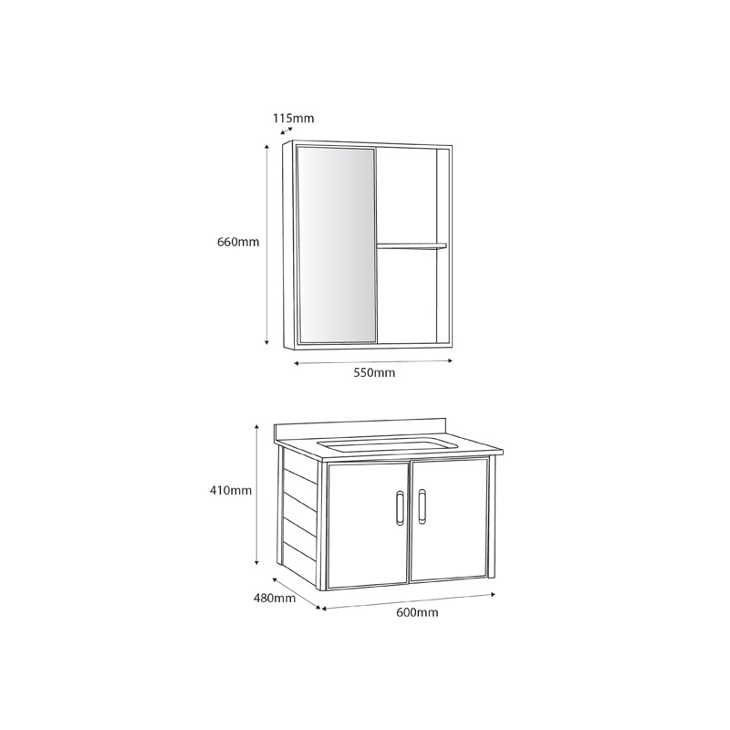L550xW115xH660mm